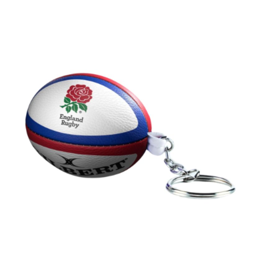 Přívěšek na klíče ve tvaru miniaturního ragbyového míče se znakem England Rugby.